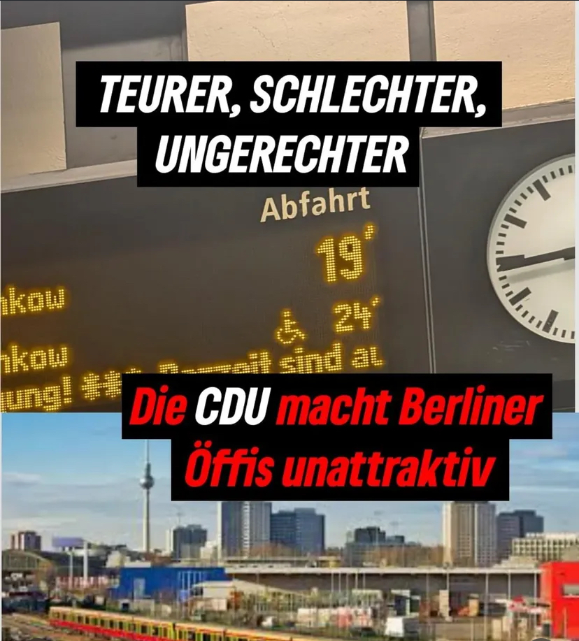 Das ist ungerecht und eine Politik gegen die Schwächsten. Zudem wird das Angebot bei stetig steigenden Kosten immer schlechter – Zugausfälle, massive Verspätungen, Überfüllung und Verwahrlosung rechtfertigen in keiner Weise die steigenden Preise. Im Gegenteil: Solange BVG und S-Bahn in der Krise stecken, sollten die Ticketpreise nicht erhöht werden.“